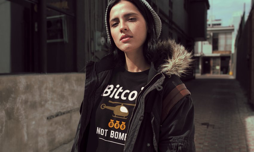 Wearing our “Bitcoin not bombs” collection will help spark the conversation..